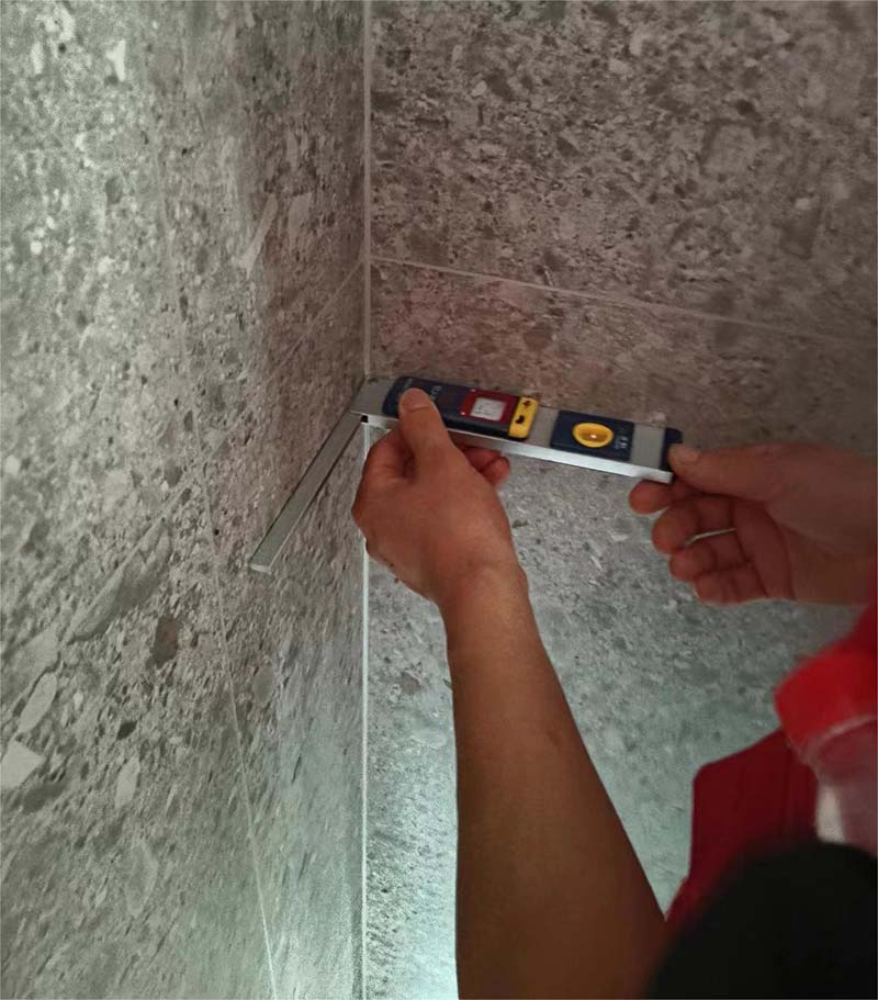 ▲检查墙面砖通角