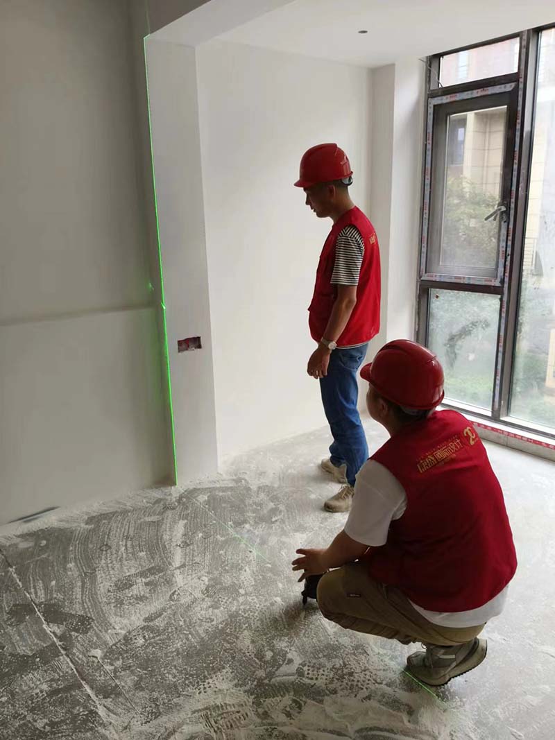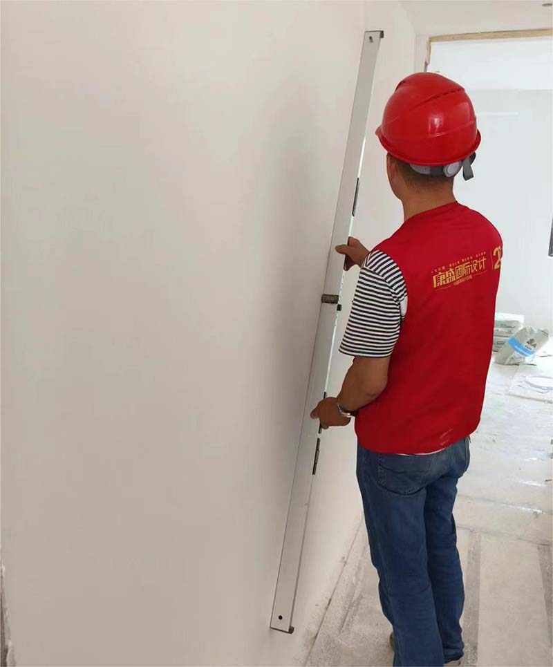 ▲检查墙面平整度