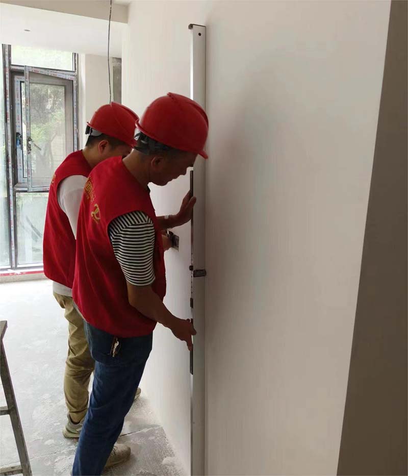 ▲检查墙面垂直度