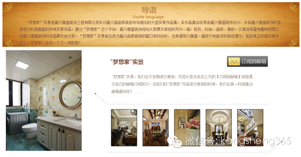 在我们康盛官网,我们开辟了独立的针对“梦想家”实景作品的订阅功能,各位网友只需要提交邮箱地址,就可以第一时间收到我们康盛最新最全的实景作品图片哦!