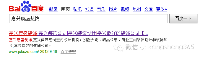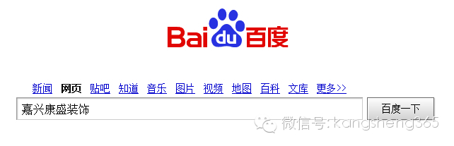1、打开浏览器,这边以百度为例,输入【嘉兴康盛装饰】