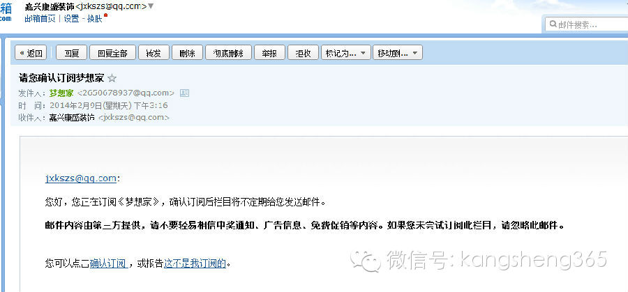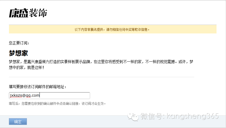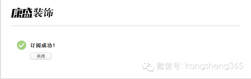 5、到这里我们康盛装饰“梦想家”实景作品的邮箱订阅就完成了,下面就等待我们康盛不定期的精美实景安排发送吧!